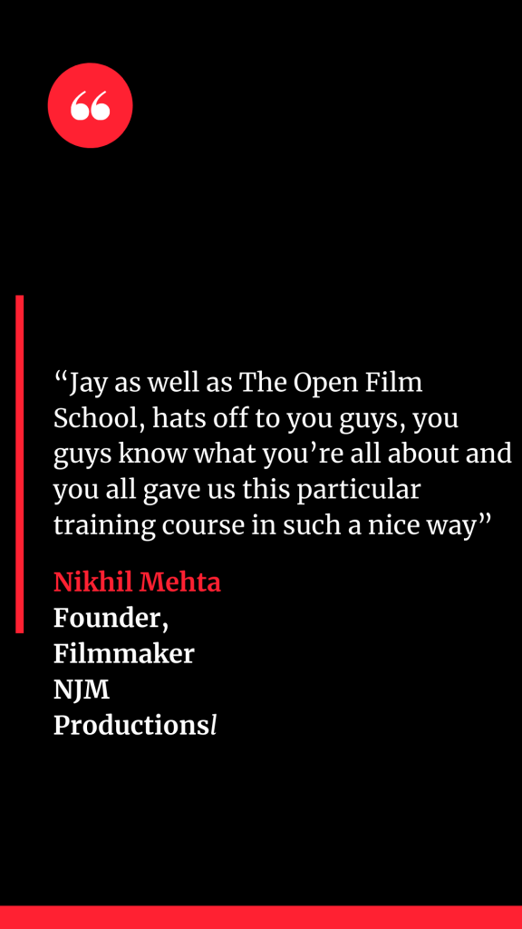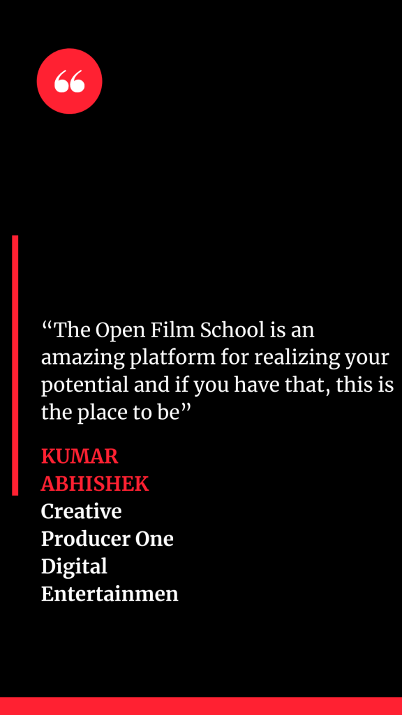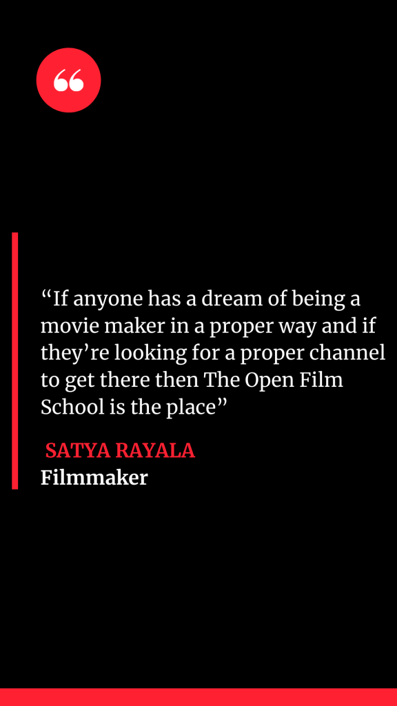 The Open Film School has been in Bangalore for the last 5 years. This course has evolved from a small workshop to a diploma. The past batches have given us a couple of award-winning films. And a couple of other filmmakers who have joined the industry as assistants or are pursuing their passion full time. The very thought of doing what you love for a living is the best motivator.